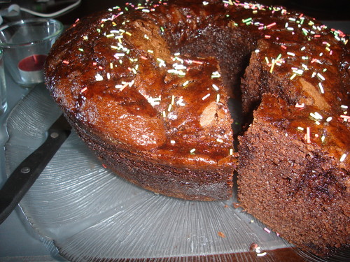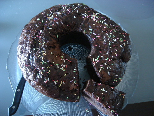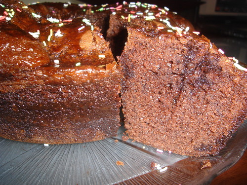 Não sendo o P. muito de doces quando faço tenho de escolher algo que ele goste e coma, senão sobra mais para mim. Já tinha feito vários bolos que acabavam sempre por ficar mais secos e menos saborosos. Então há umas semanas descobri uma receita de um Bolo de Chocolate Húmido. Resolvi experimentar e realmente ficou excelente!